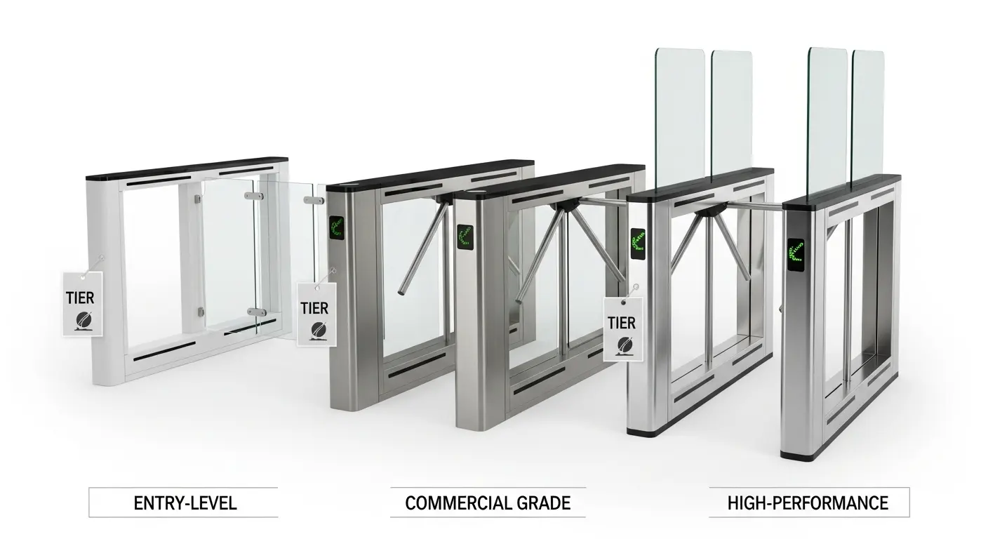 A: フラップ式改札機は格納式の翼パネルを使用します (ガラスまたはアクリル) アクセスが許可されると水平に開く, その後、自動的に再閉鎖します. 三脚回転式改札機は、腰の高さにある3本の回転アームを使用します. フラップ改札機は高いスループットを提供します (35–60 ppm vs. 25–45 ppm), はるかに高級感のある外観, そしてより速いサイクルタイムを実現しており、スピードと美観の両方が重要な企業オフィスや交通環境で好まれる選択肢となっています.