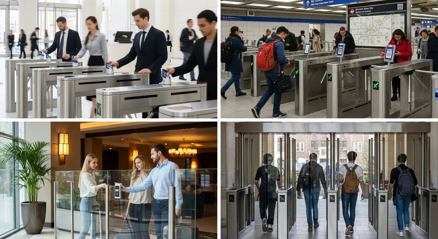 フラップターンスタイルは、個人認証のアクセス制御とプロフェッショナルな外観が必要な、交通量の多い屋内環境に適しています. さまざまな施設タイプがこれらの配置をどのように展開しているかは以下の通りです: