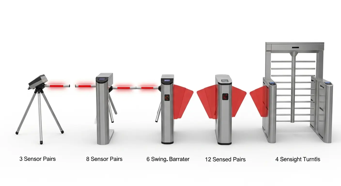 | スイングバリアゲート | 6 ペア | 8–12ペア | ワイドレーン + スイングアークはより複雑な検出幾何学を生み出します |