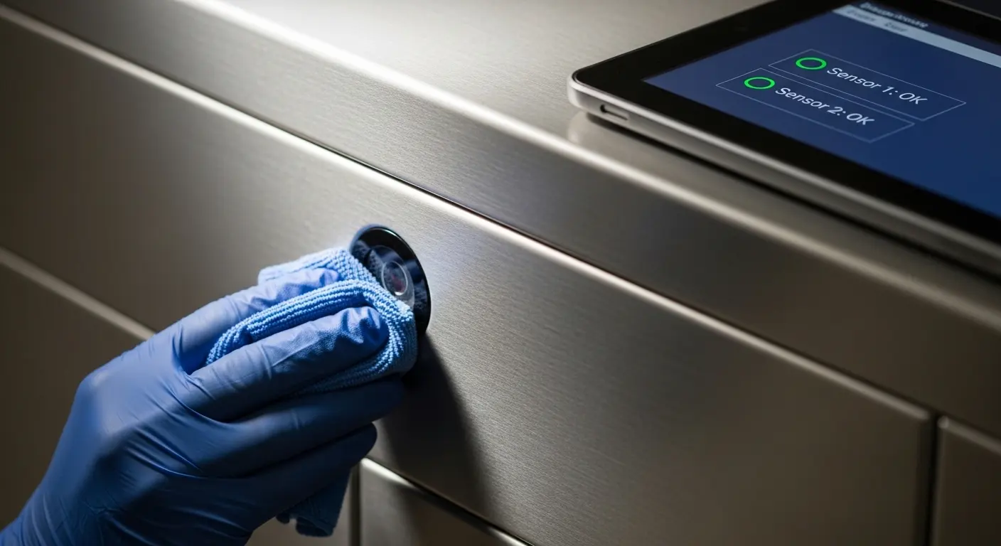 赤外線発射器と受信機は、小さなプラスチックやガラスレンズの背後に配置されています. 塵, 手に触れたグリース, そして結露が数か月にわたって蓄積し、信号強度を低下させます. 汚染されたレンズはビームを弱め、断続的な誤検出や誤検出の事象を引き起こします. 清掃頻度: 交通量が多い場所や埃っぽい環境で30〜60日ごとに.